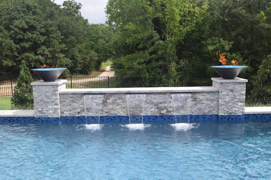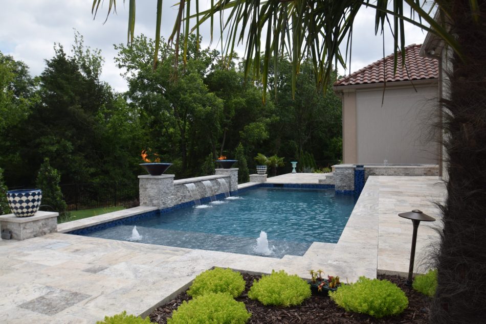 - Features: Bubblers • Clearwater Pebble Brilliance • Fire Bowl • Milsap Chopped Stone • Raised Beam • Raised Spa • Sheer Descent • Silver Travertine • Tanning Ledge •