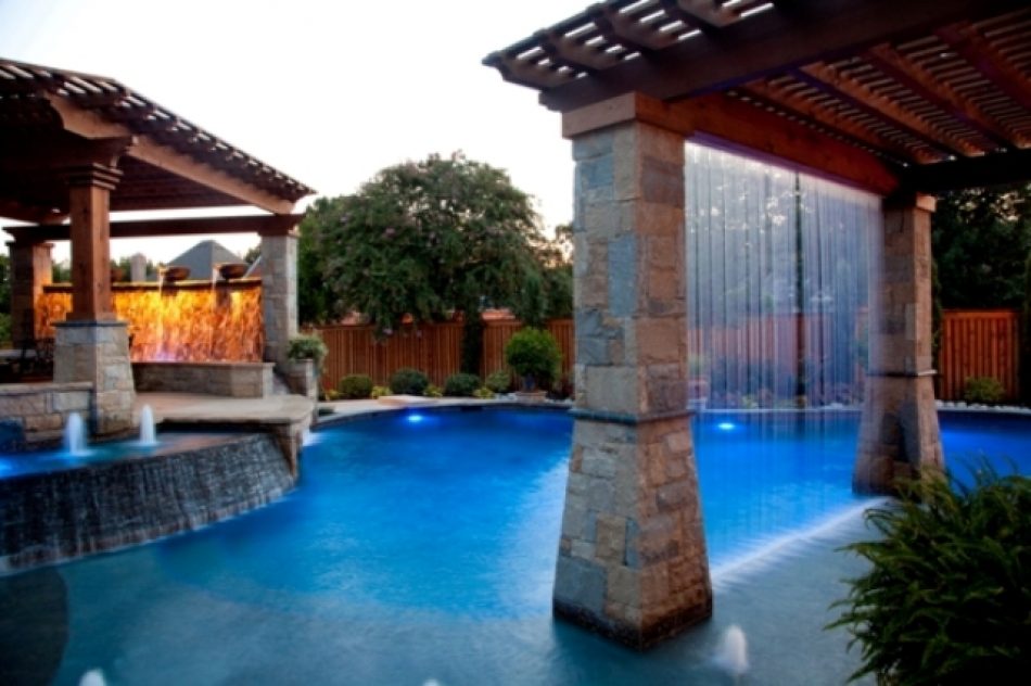 - What was it about this project that required an unusual level of quality workmanship? The pool project was a present to his parents along with the house. The project had to include everything but a slide in a small sloped yard. Easements on two sides deleted 7’ from the workable area. Every inch was accounted for to including columns to give illusion of more space. The stone work is unparallel. Drystack tapered columns with drystacked walls and the slate drystack spillway pulled all the materials together.