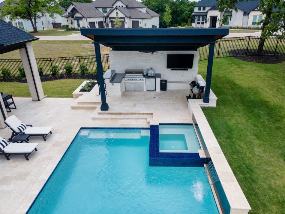 - Features: Outdoor Kitchen • Shed Roof Cabana •