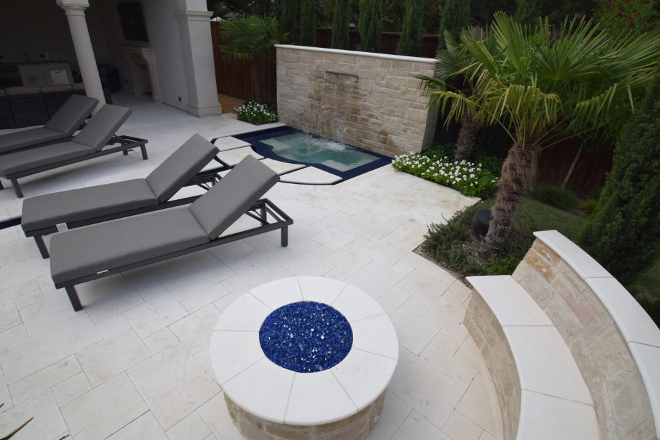 - Features: Buff Lueders • Cannon Jets • Flush Spa • Freska Leuders Limestone • Sheer Descent • White Diamonds PebbleSheen •