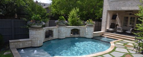 - Features: Aqua Blue PebbleSheen • Austin Stone • Buff Lueders • Flush Spa • Step Pads •